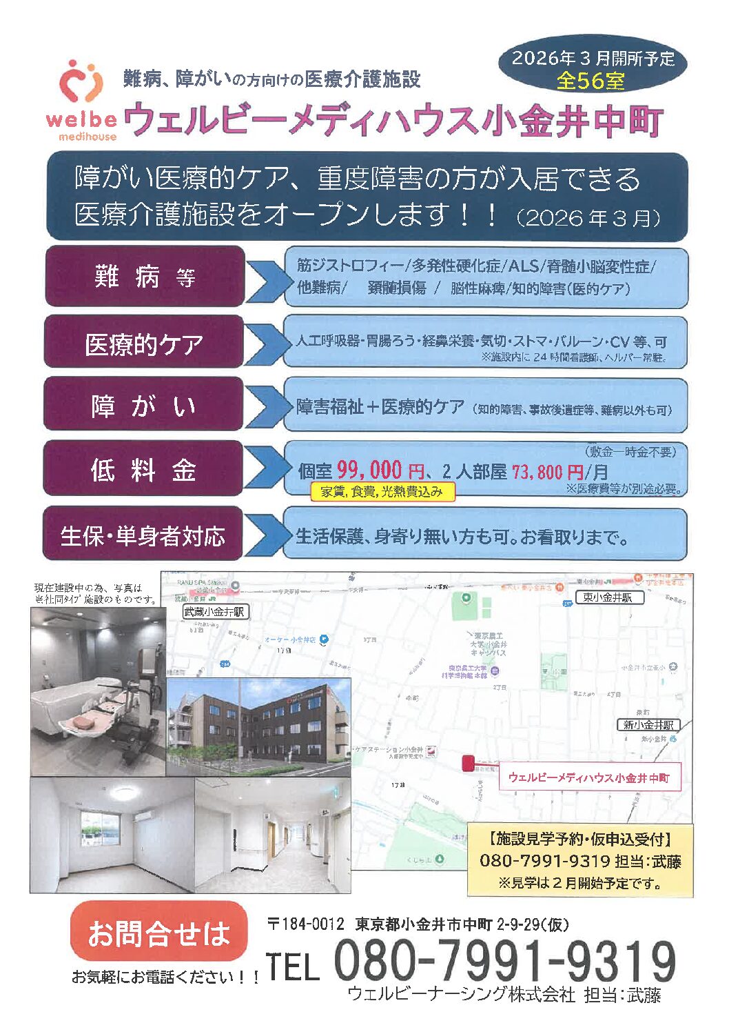 「ウェルビーメディハウス小金井中町」の情報提供がありましたのでお知らせいたします。