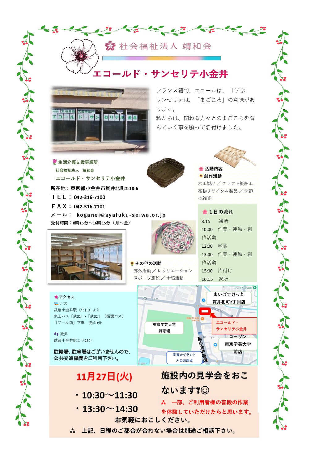 エコールド・サンセリテ小金井より施設見学会の案内がありましたので、お知らせいたします。