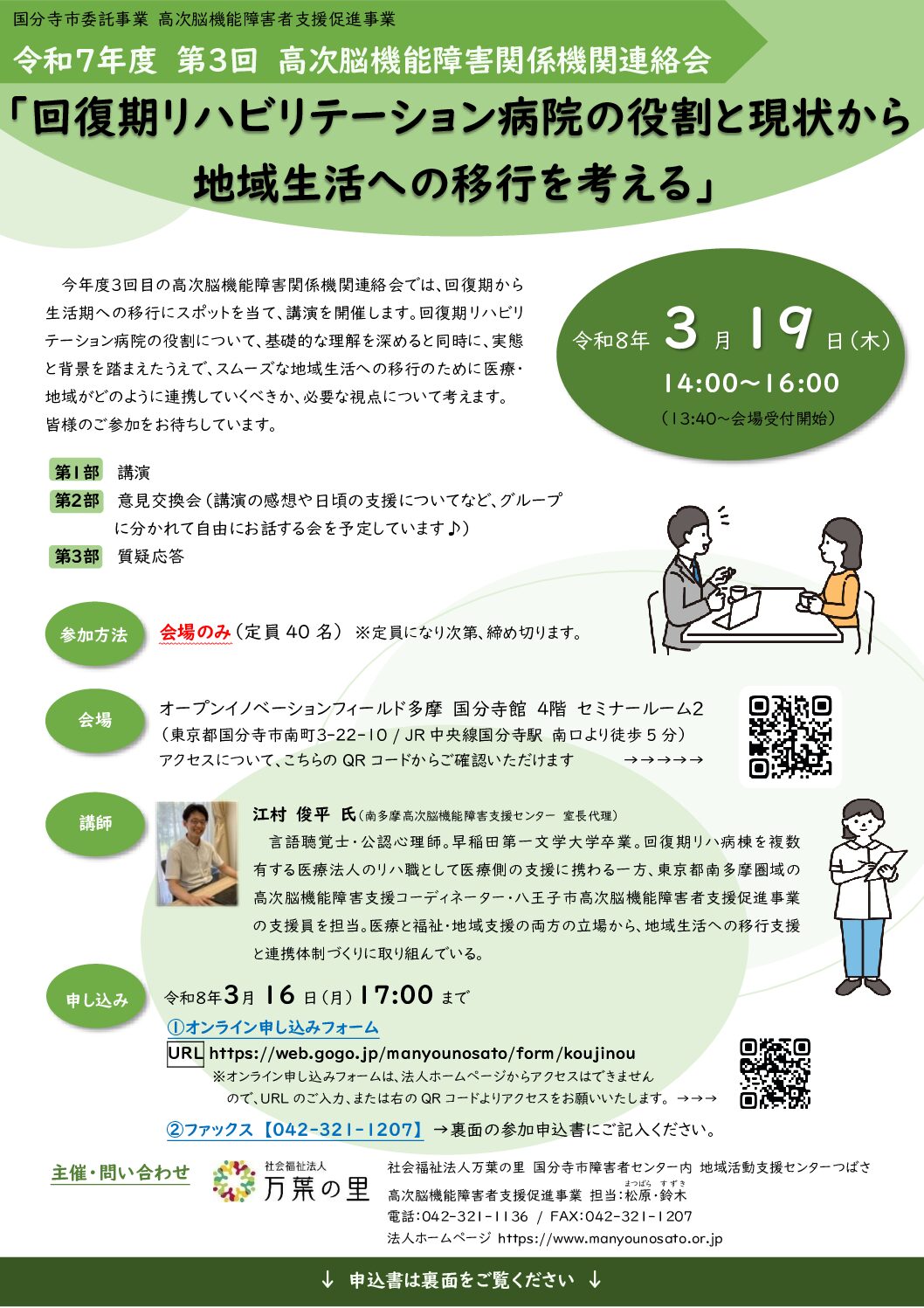 地域活動支援センターつばさより令和7年度第3回高次脳機能障害関係機関連絡会のご案内がありましたのでお知らせいたします。
