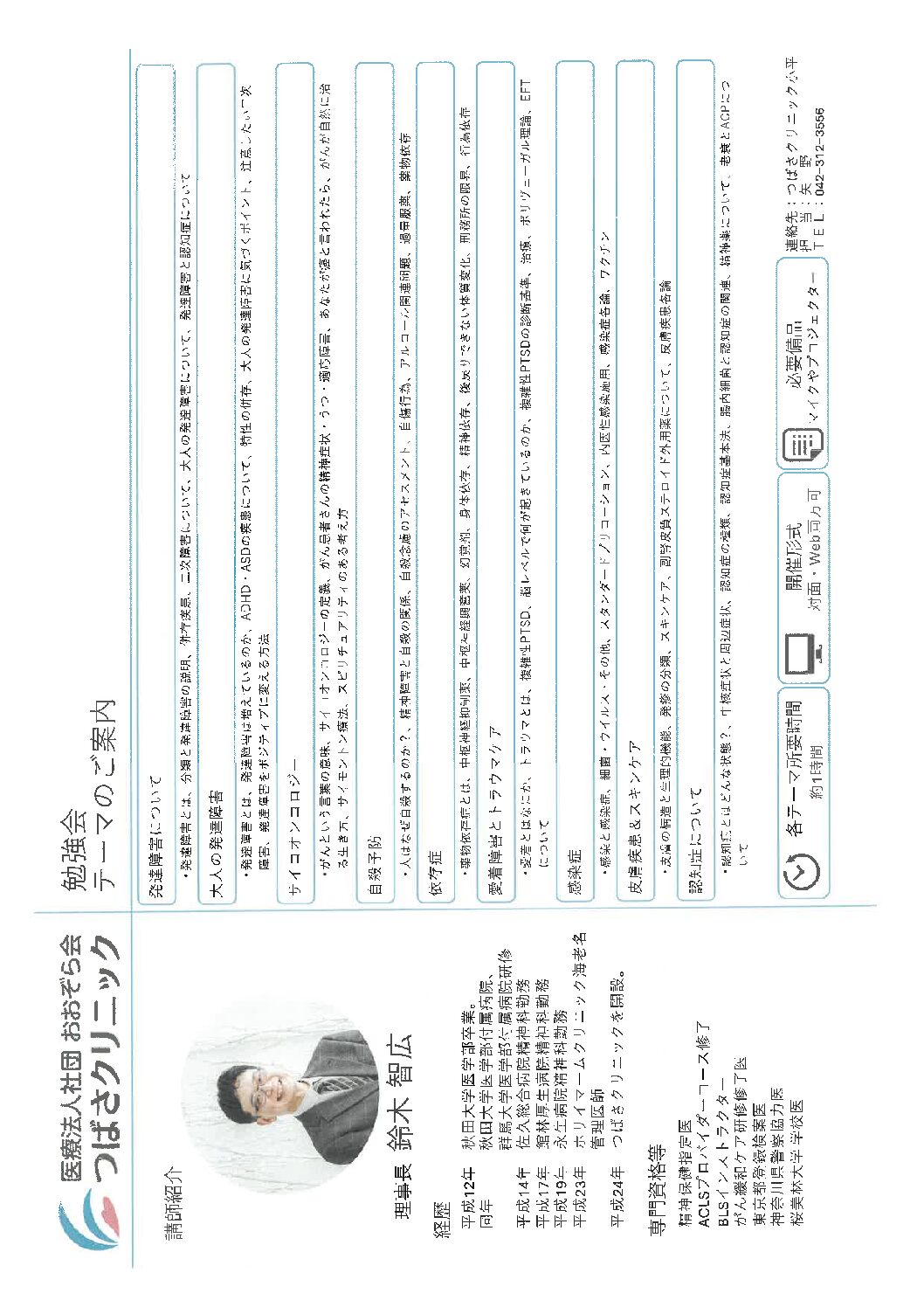 また、つばさクリニックでは勉強会を開催しておりまので、、ご興味のある方はお問い合わせください。