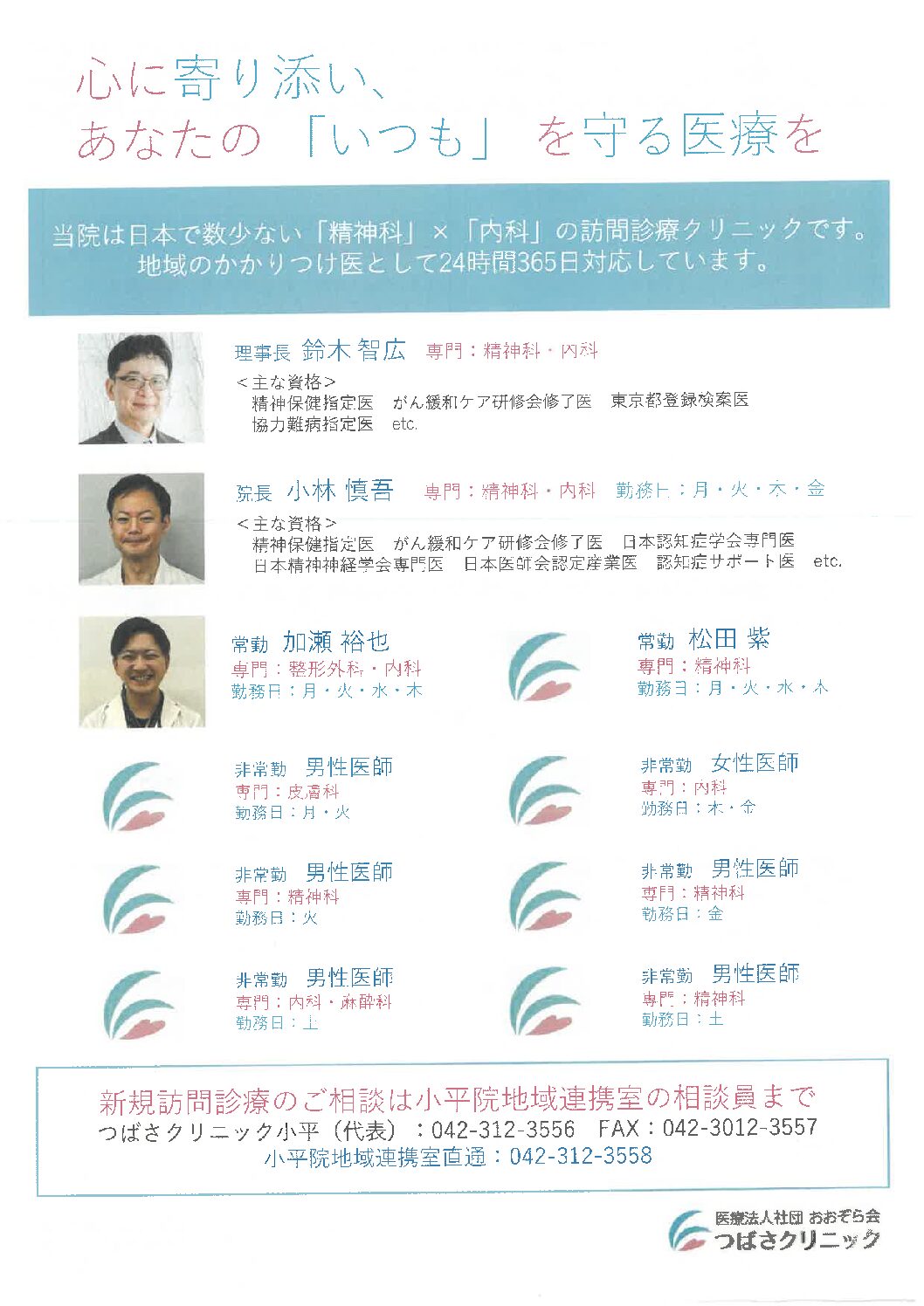 小平市にあります訪問診療クリニック「つばさクリニック」より情報提供がありましたので、お知らせいたします。