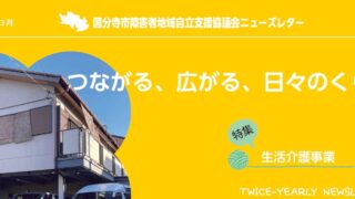 ライフステージをともに! 特集「ひろがる相談支援専門員のつながり」 このニューズレターは、様々な分野の地域課題を掘り起こし、一つひとつ解決に向け取り組んでいく、自立支援協議会の報告をお届けするものです。今号は、国分寺市内の障害福祉サービス等...